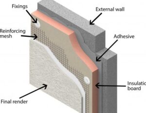 One of the most important uses of fibreglass mesh is within external wall insulation systems and external wall insulation solutions used in modern energy efficient buildings. In these applications the mesh is embedded into base coat renders to provide structural reinforcement and to prevent cracking across the insulated façade.